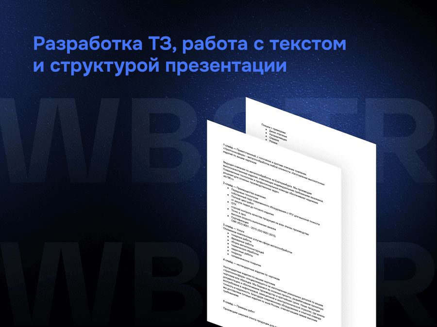 Нужно было переработать тексты с сайта и исходных материалов, выделить ключевые направления работы компании и её преимущества, а также сохранить визуальную связь с уже обновлённым сайтом и фирменным стилем. Отдельный акцент сделали на подаче информации: презентация должна была читаться быстро, без перегруза и без необходимости что-то дополнительно объяснять со стороны менеджера.